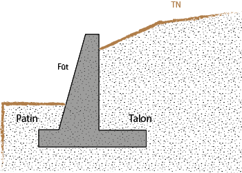 Il faut vérifier ce coefficient FS à 1,5, s’il est petit alors le mur est insuffisant il faut prévoir un talon plus large ou drain + clé de glissement.